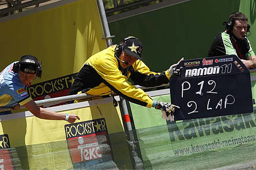 Xavier Boog (7ème): ‘’J’ai réalisé deux excellents départs aujourd’hui mais je n’ai pas su en tirer profit en première manche. En effet, je suis parti sixième mais je n’arrivais pas à  trouver le bon rythme et je suis tombé deux fois. Je n’arrêtais pas de commettre des erreurs et je suis arrivé en treizième position. J’étais vraiment frustré et furieux sur moi-même lorsque je suis rentré au camion. J’étais déterminé à  faire mieux en seconde manche et c’est ce qui est arrivé. En effet, au premier virage, j’occupais la seconde position mais j’ai viré un peu large et trois types m’ont dépassé. Je suis arrivé malgré tout à  garder un bon rythme et je n’ai eu aucun problème à  rouler avec les leaders. J’ai repéré un endroit où je pouvais dépasser et je suis remonté à  la seconde place, juste derrière le vainqueur. Je crois avoir maintenant prouvé que je pouvais faire des podiums et ce sera mon prochain objectif. »
