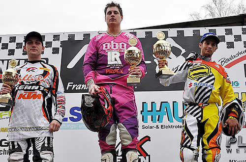 Si c’est le Hongrois Kornel Nemeth qui s’est imposé ce dimanche dans le cross inter de Frankenbach, en Allemagne, on y a surtout remarqué la très belle sortie de Valentin Teillet. Pour sa première course sur la Suzuki 250 RM-Z , l’ancien champion d’Europe a remporté la première manche avant de chuter au départ de la seconde puis de remonter malgré tout en 5ème position, ce qui lui a permis de monter sur la seconde marche du podium au classement général.