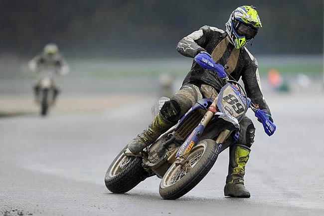 « J’étais presque content qu’il pleuve ce week-end à Mettet, nous avoue Jérémy. Des conditions pluvieuses, cela signifiait que la vitesse diminuait également en course, ce qui me permettait de me rapprocher des meilleurs. J’aime le Supermoto et rouler à Mettet était une manière très sympa de terminer la saison. Je m’étais contenté de changer de roues et de modifier les suspensions sur ma Yamaha car je ne voulais pas donner trop de travail au team. On savait qu’on n’allait pas à Mettet pour gagner ! »
