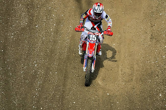 Dans le 2ème tour de la première manche, Ludovic est parti à la faute et est passé par dessus la moto, retombant lourdement sur son épaule. Malgré la douleur très vive et les craintes de déplacement ou de fracture, les derniers examens ont finalement confirmé que seule la clavicule est décollée. Rien de très grave, heureusement, mais de 2 à 6 semaines d’arrêt forcé pour notre jeune compatriote qui ne sera donc pas, quoi qu’il arrive, au départ du GP de Valkenswaard ce week-end.
