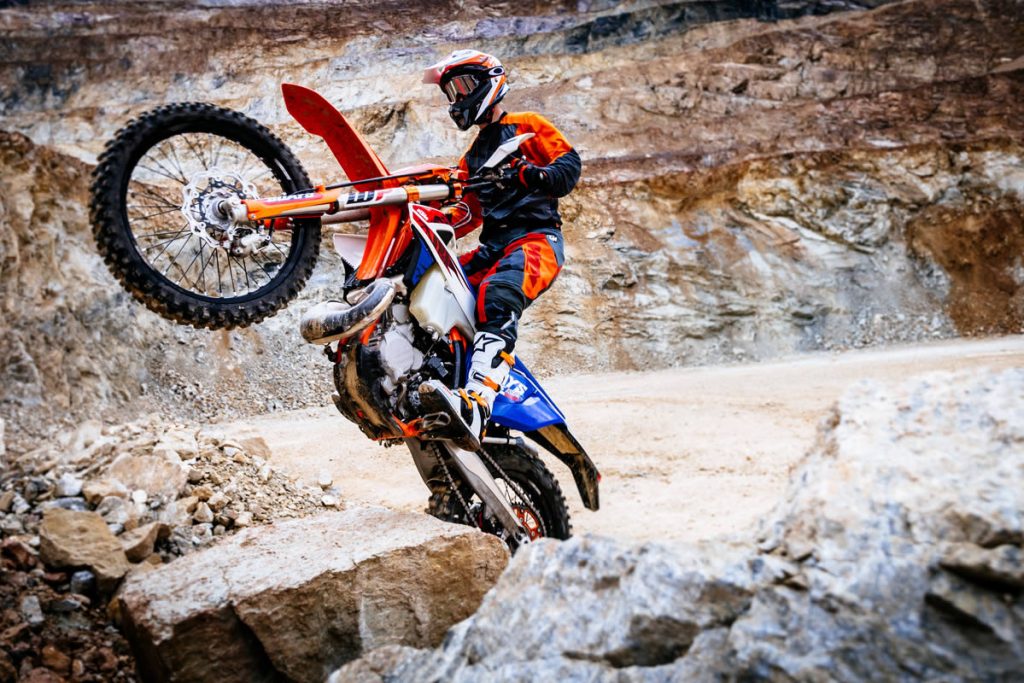 En versions « Six Days », bourrées de pièces issues du catalogue Power Parts ou tout simplement dans leur livrée d’origine, en studio ou dans le décor somptueux de l’Erzberg Rodéo, découvrez les KTM enduro 2018, dont les 250 et 300 EXC à injection, sous toutes les coutures…