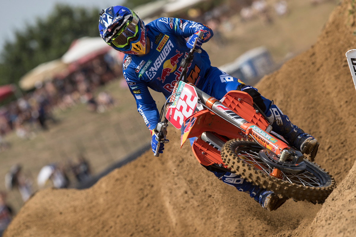 En MX2, c’est Pauls Jonass qui prend une nouvelle pole devant son coéquipier Prado et le pilote Husqvarna Thomas Covington. Victime d’une chute en début de manche alors qu’il occupait la deuxième place, Julien Lieber se contente de la 15ème place. Bien parti lui aussi, Brent Van Doninck disparaissait rapidement de la course sur ennuis mécaniques.