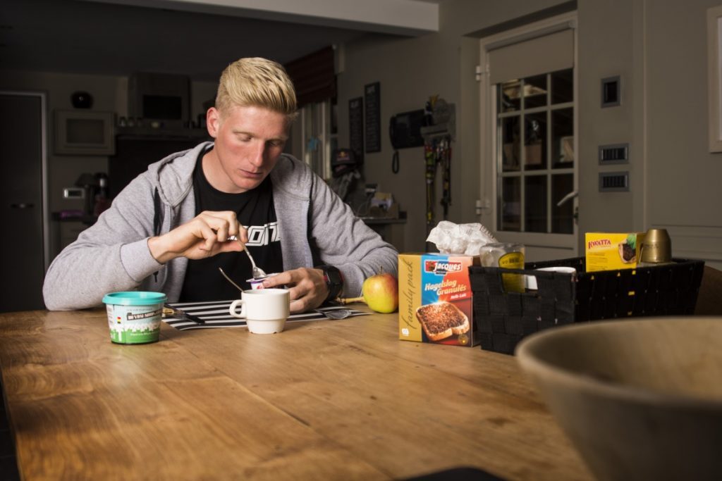 Dieter Jans nous emmène dans le quotidien de Greg Smets. En 10 images, il nous montre à quoi ressemble la vie de notre jeune compatriote les jours où ils ne roulent pas à moto. Du petit-déjeuner au moment de console vidéo en soirée…