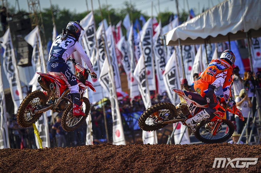 Jeffrey Herlings (1er): « Rentrer à la maison avec un total de 97 points après deux week-ends passés en Asie, c’est vraiment formidable. Je ne m’y attendais pas du tout. C’est comme un rêve qui devient réalité. Non seulement je n’ai pas perdu de points mais j’en ai gagné; pas beaucoup mais quelques uns, ce qui me fait dire que le championnat est loin d’être fini. Mes concurrents ont tous remarquablement roulé et dans la première manche, il a fallu que je me donne à fond pour contrer Tim (Gajser) et dans la deuxième manche pour contenir Clément (Desalle). »