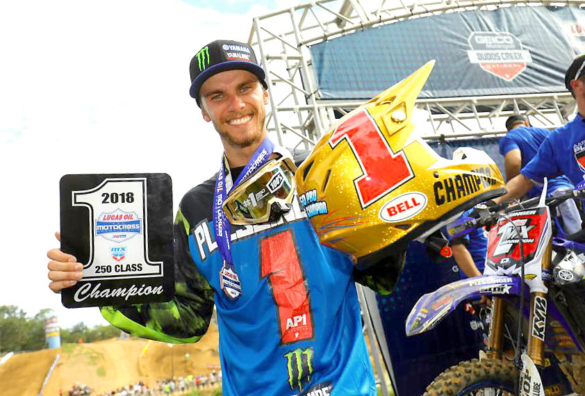 Le titre est dans la poche pour Aaron Plessinger ! Vainqueur de la première manche à Budds Creek, avant-dernier round du championnat outdoor US, le pilote Yamaha s’assurait sans attendre de son premier titre MX250. Second du premier débat, RJ Hampshire s’imposait dans la deuxième manche et s’offrait par la même occasion son premier succès sur le championnat. Plessinger, qui avouera à l’arrivée ne pas être arrivé à trouver la concentration nécessaire, terminait pour sa part 11ème mais montait malgré tout sur la 3ème marche du podium derrière Hampshire et Sexton.