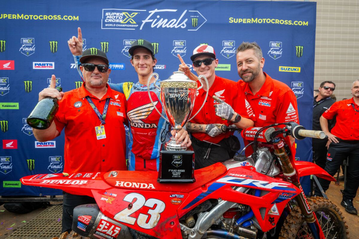 Chase Sexton s’y est offert un doublé autoritaire. Dominé par son coéquipier Jett Lawrence durant toute la saison outdoor, le champion Supercross en titre renoue avec le succès à Charlotte. Il s’impose devant Ken Roczen (3+3) et Dylan Ferrandis (2+4). Le récent champion outdoor dans la catégorie reine Jett Lawrence (7+2) termine au pied du podium en devançant Jason Anderson, Aaron Plessinger, Justin Barcia et Cooper Webb, ce dernier effectuant à Charlotte sa première sortie au guidon de la Yamaha du team Star Racing.