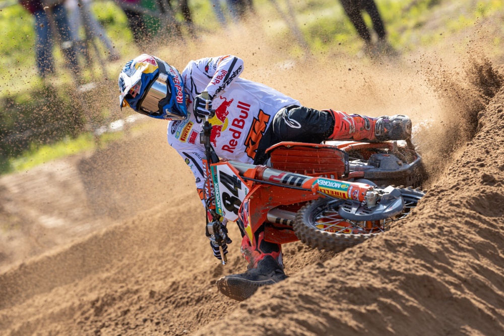 Jeffrey Herlings disputait ce dimanche le beach-cross de Vlissingen, chez lui, en Hollande. Vainqueur de la première manche, l’officiel KTM a ensuite été victime d’une chute dans un accrochage avec un pilote attardé dans la seconde.