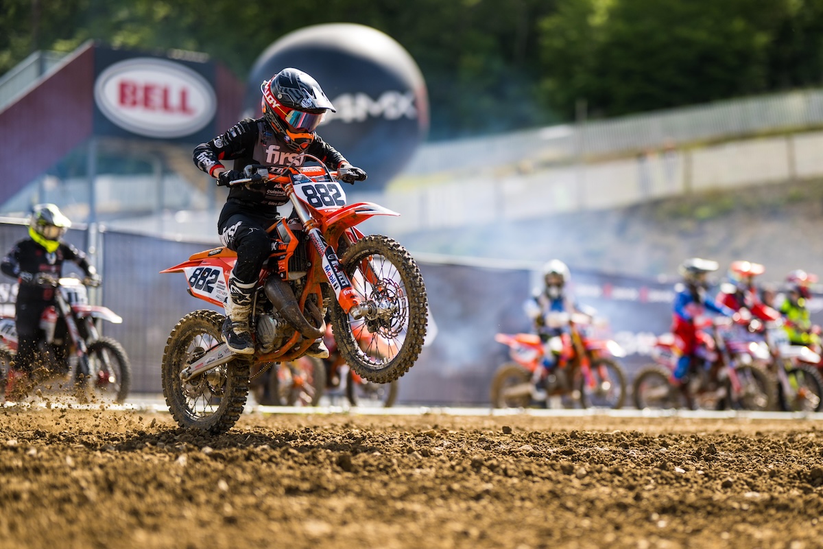Au second départ, c’est Enzo Herzogenrath qui s’élance en tête avec sur ses talons Kenzo Ferez, Arno Cazet, Wesley Suteau et Loan Torro. Les hommes forts de la première manche se retrouvent une fois de plus aux avant-postes. Impressionnant d’attaque, le jeune pilote TMX Compétition tient le choc, finit par creuser l’écart et remporte sa manche sur le 24MX Tour à seulement douze ans.